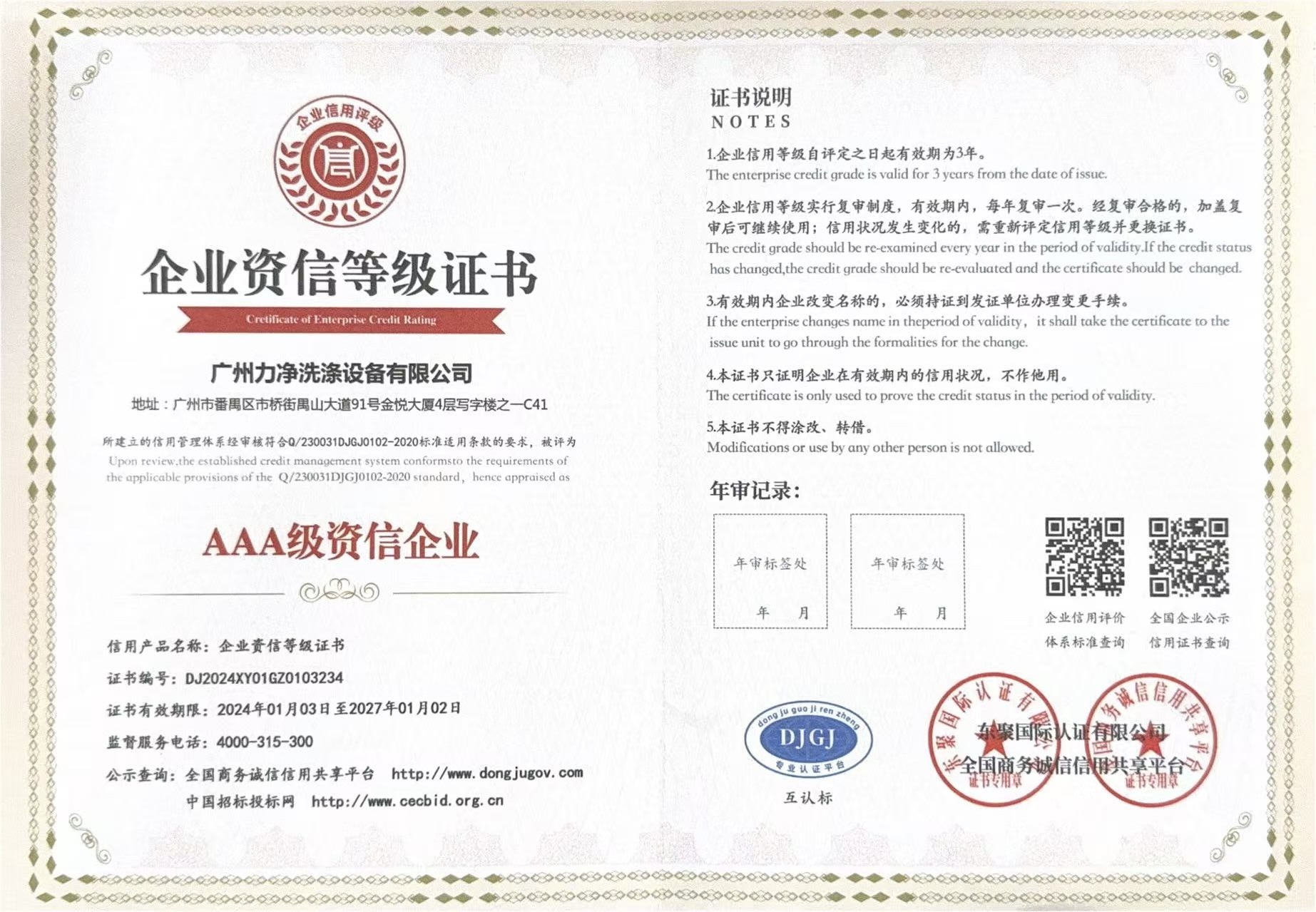 AAA級重合同守信用企業(yè) AAA級重質量守信用單位 AAA級誠信經營示范單位 AAA企業(yè)信用等級證書