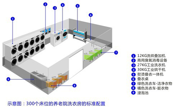 目前在我國很多養(yǎng)老院機構還是沒有能力配備自己的洗衣房,很多都是把衣物外包給外面的洗滌公司洗滌、這些洗滌廠不僅沒有進行分類洗滌并且無法自動消毒,老人皮膚病、感染病等易互相傳染;很多洗滌廠為了節(jié)約成本都是把從不同行業(yè)中收集回來的衣物統(tǒng)一洗滌,比如酒店的床單被套布草也跟衣物一起混合洗滌。洗滌完了之后,衣物應該使用烘干機烘干,床單被套要使用燙平機熨燙烘干,所以為了讓養(yǎng)老院的老人們住的安全,穿的舒服健康,必須要給養(yǎng)老院配置自己的洗衣房。
